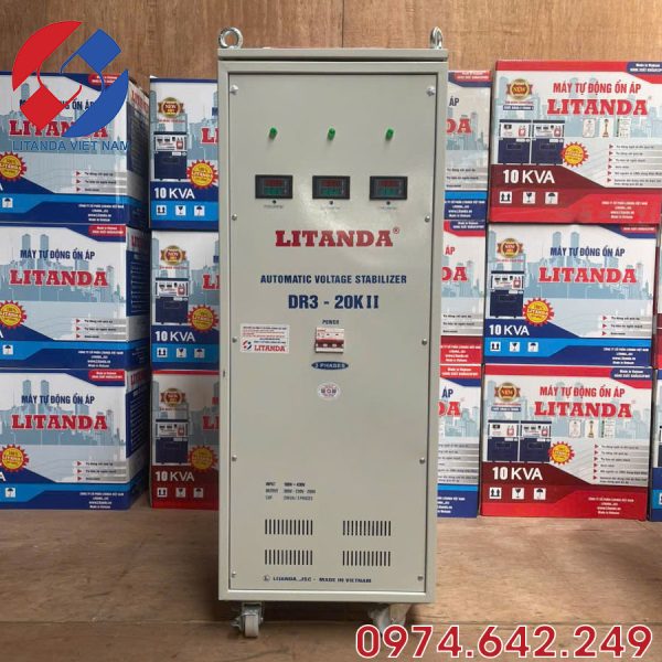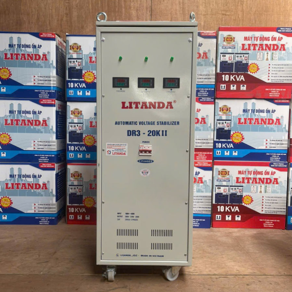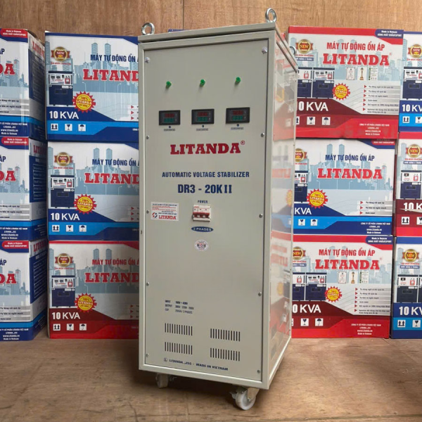 Ngoài chức năng ổn định điện áp 380v /3 pha, sản phẩm còn được tích hợp cả biến áp đổi nguồn. Sẽ ổn định cả điện áp nguồn ra 220V /3 pha và 200V /3 pha.Ổn áp Litanda 20KVA 3 pha có công suất tối đa là 20KVA tương đương với mỗi pha là 7KVA. Đối với nhu cầu công suất lớn hơn quý khách có thể lựa chọn ổn áp 3 pha 30KVA, 45KVA, 60KVA, 75KVA, 100KVA,….