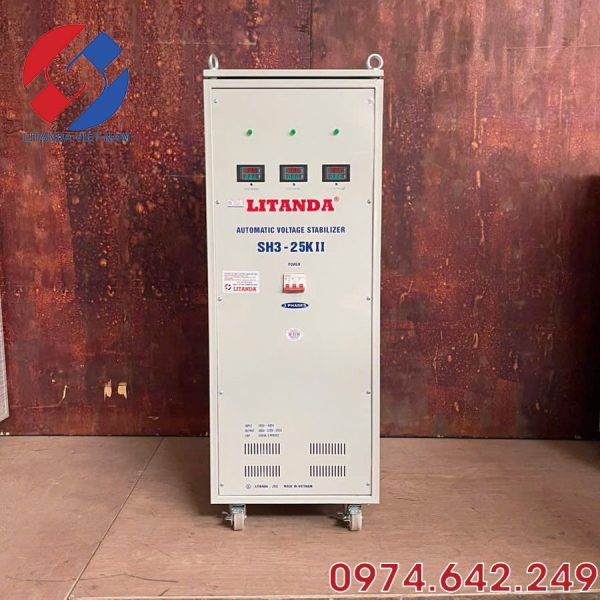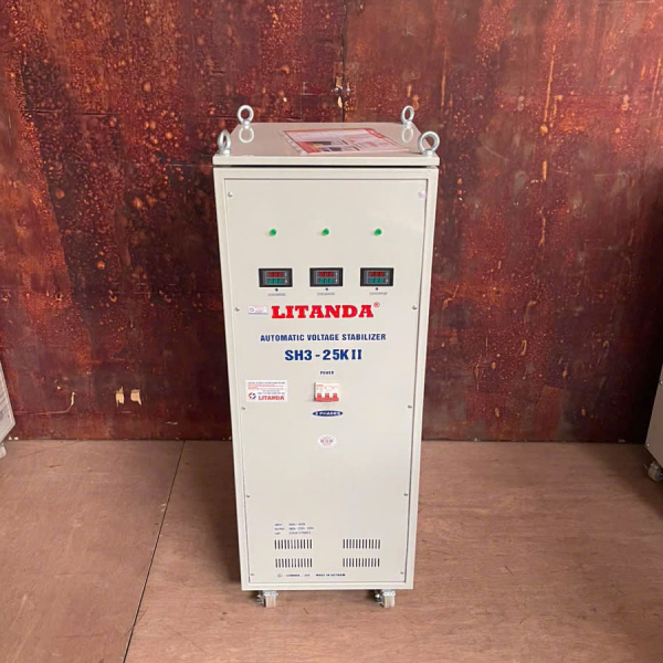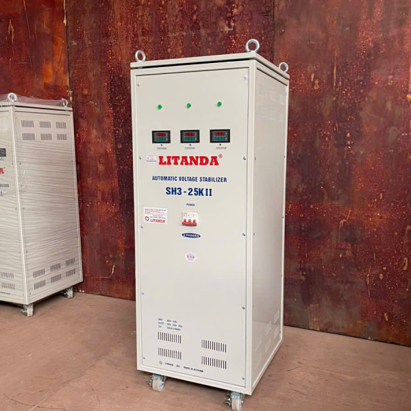 Ổn áp 25KVA 3 pha SH3-25KII là thiết bị ổn định điện áp cao cấp do thương hiệu Litanda sản xuất, được thiết kế dành riêng cho các nhà máy, xưởng sản xuất, nhà hàng, khách sạn hoặc hệ thống thiết bị điện 3 pha có công suất trung bình.Với dải điện vào rộng từ 260V đến 430V, điện áp ra ổn định 380V, 220V, 200V, sản phẩm giúp đảm bảo hoạt động liên tục và an toàn cho các thiết bị điện, giảm thiểu rủi ro hỏng hóc do điện áp không ổn định.