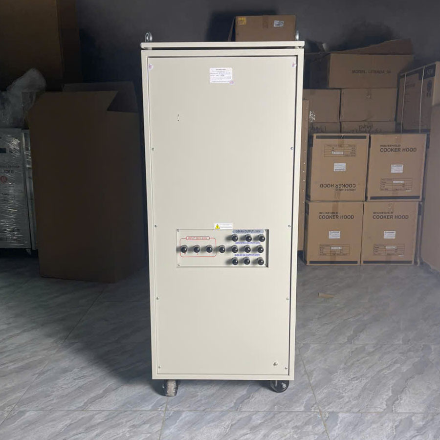 Thiết bị sử dụng công nghệ điều khiển tự động thông minh, giúp điều chỉnh điện áp đầu ra luôn ổn định ở mức tiêu chuẩn 380V, bảo vệ các thiết bị điện hoạt động ổn định và bền bỉ.