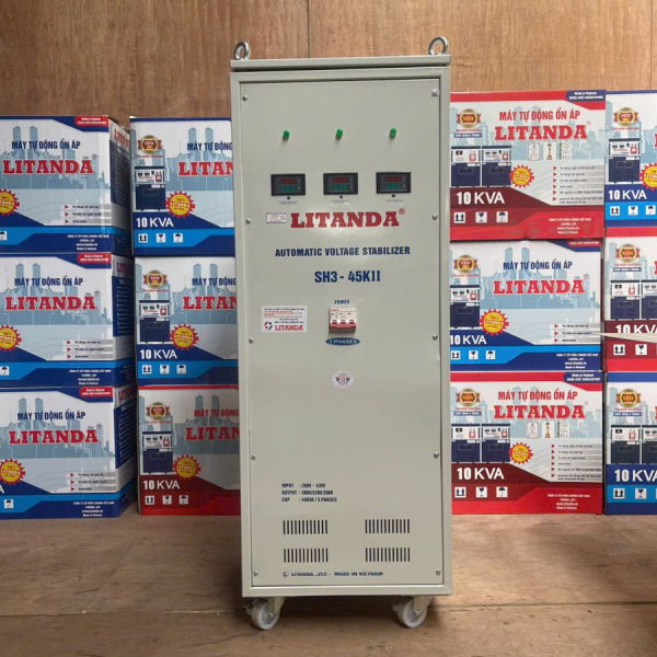 Ổn áp Litanda 45kva 3 pha dải 260v-430v là máy ổn áp 3 pha phù hợp sử dụng cho các nhà xưởng, xí nghiệp, nhà nghỉ, nhà hàng… Chúng tôi chuyên phân phối ổn áp Lioa 45KVA 3 pha cho các khu công nghiệp, dự án lớn nhỏ trên toàn quốc. Các sản phẩm được cam kết mới nguyên đai nguyên kiện, hàng chính hãng, không bán hàng cũ…
