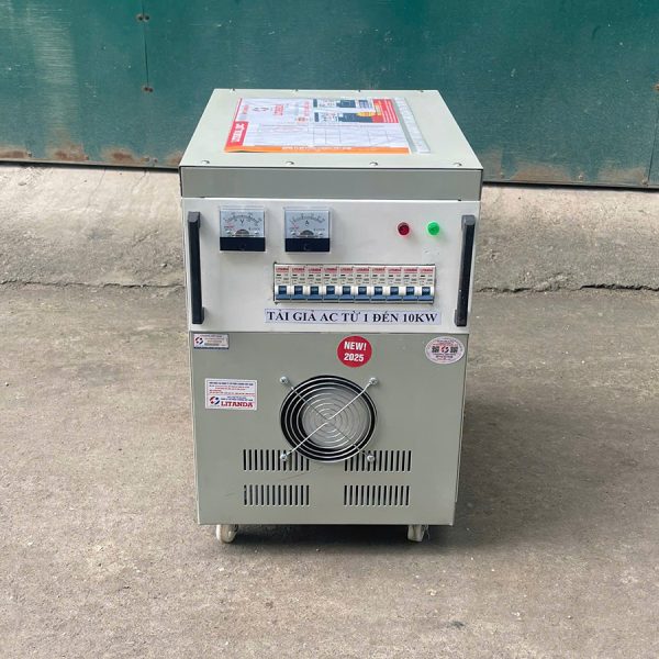 Tải giả AC Litanda là thiết bị chuyên dụng được phát triển nhằm cung cấp giải pháp tải tiêu thụ điện có thể điều chỉnh linh hoạt, đáp ứng nhu cầu thử nghiệm công suất và đo thời gian hoạt động của các thiết bị điện. Sản phẩm được ứng dụng rộng rãi trong kiểm tra máy phát điện, ổn áp, biến áp, cũng như các thiết bị điện khác, giúp đánh giá hiệu suất vận hành một cách chính xác và tin cậy.